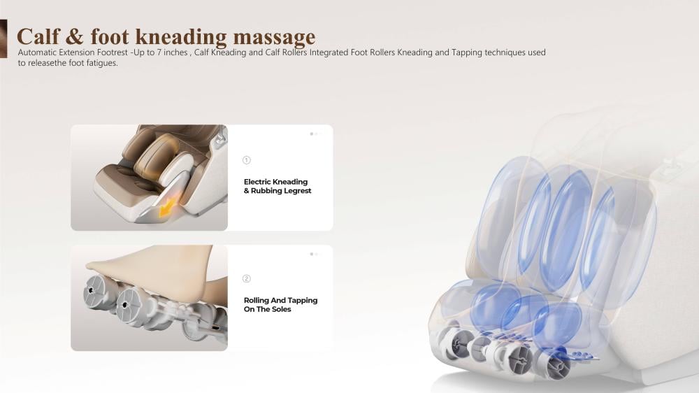 • Care -Calfالعناية بالساقين : يخفف شد عضلات الساقين بضغط هوائي مريح مع اللف والضغط ، يساعد على توزيع