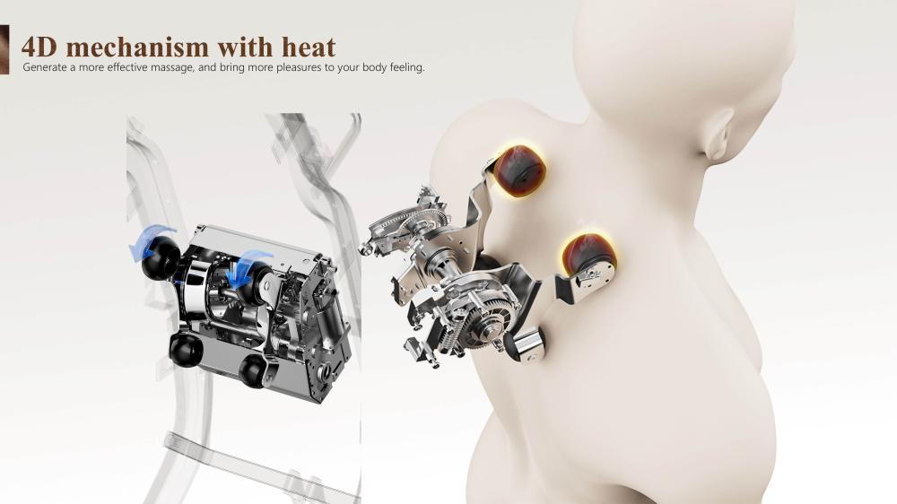 • تقنية المسح والفحص الدقيق Scanning : تعتمد هذه التقنية على وجود حساسات استشعار موزعة في الكرسي لقياس أبعاد الجسم وارتفاع الأكتاف وضمان عمل مساج حسب شكل جسم المستخدم
