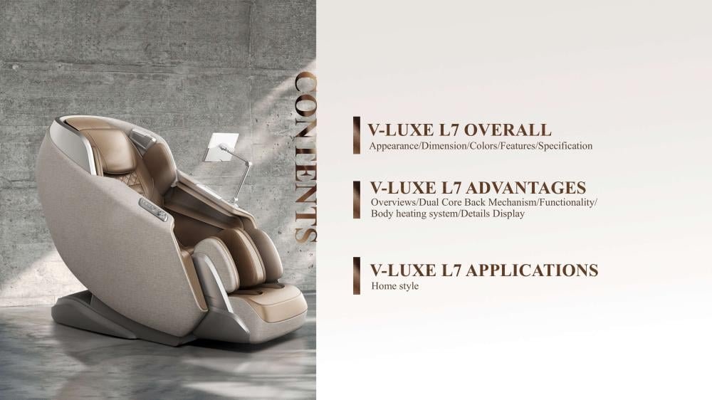 • Care -Spineالعناية بالعمود الفقري : يتبع الانحناء الطبيعي للعمود الفقري، يستهدف نقاط الضغط باستخدام الشياتسو والضغط والدفع ، يساعد على تحسين الدورة الدموية وتخفيف آلام الظهر وسوء الجلسة