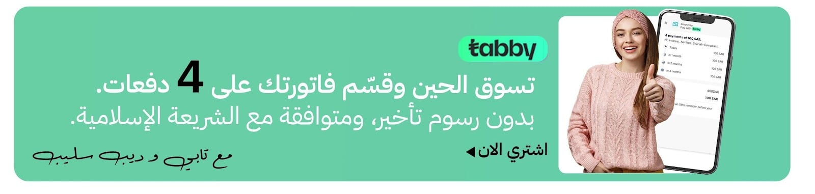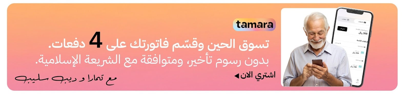 ندعم خيارات التقسيط المريحة من خلال شركائنا: تابي، تمارا، وMIS.